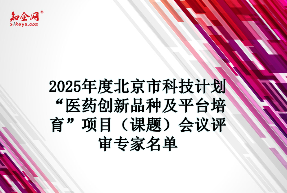 2025年度北京市科技计划“医药创新品种及平台培育”项目(课题)会议评审专家名单