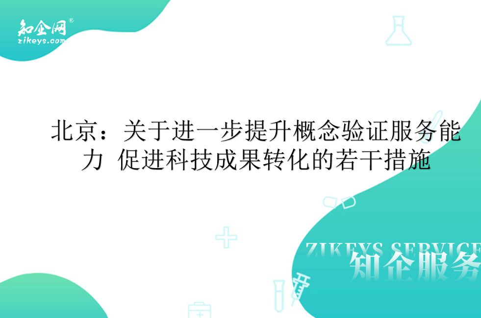 北京:关于进一步提升概念验证服务能力 促进科技成果转化的若干措施